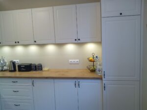 podświetlenie LED punktowe pod górnymi szafkami poprawiające komfort pracy,